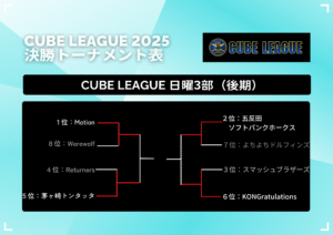 | 3 | スマッシュブラザーズ | 4 | 4 | 0 | 0 | 12 | 25 | 13 | 12 |